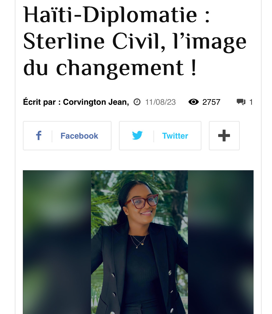 Notre analyse approfondie de ladite publication rejoint les publications antérieures de ceux qui présentaient Sterline non pas comme CIVIL. Haïti-Diplomatie : Sterline Civil, un modèle d’excellence ! ; Pour un autre département des Nippes, L’éternelle plaidoirie de Sterline Civil ; Sterline Civil, l’image du changement (Insertion demandée, Le nouvelliste, Le National)