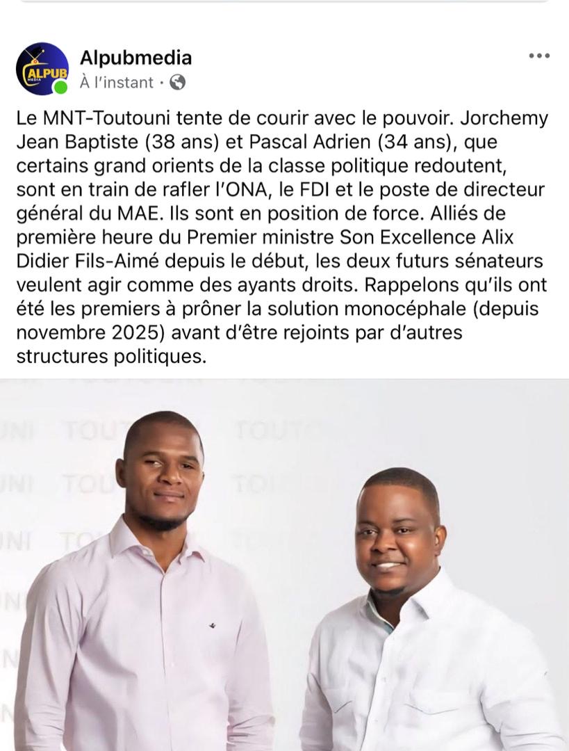 Alors que l’on espérait une exclusivité de PAPPost, qui, depuis la signature du pacte, confond ses contenus éditoriaux avec ceux de la radio nationale, c’est ALPUB MEDIA qui a divulgué l’information. Il n’est guère surprenant que Pascal et Jorchemy, deux jeunes politiciens aux méthodes politiques traditionnelles, qui ont conduit Jean Henry CEANT à la démission et Ariel Henry à s’exiler, puissent réussir à rafler plusieurs postes importants avec Alix Didier Fils-Aimé.